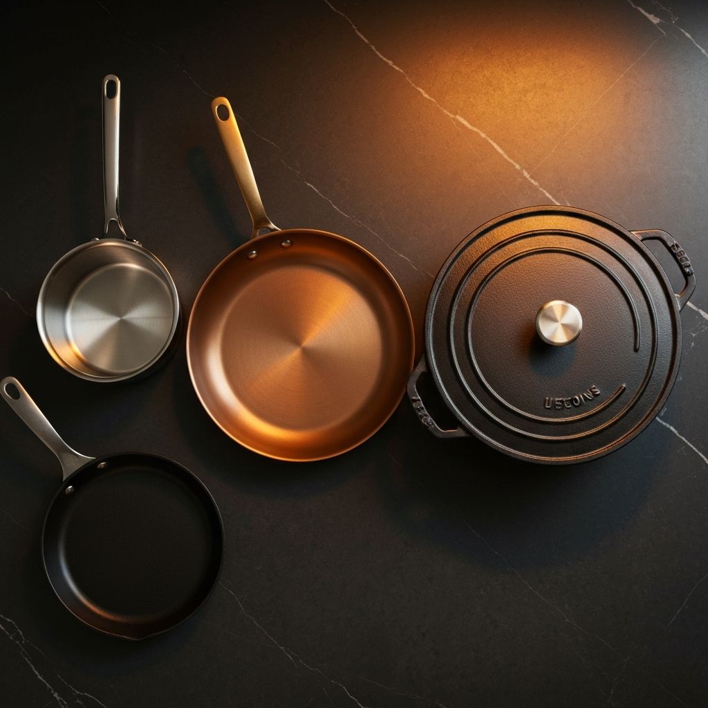 | Best For | Searing, browning, deglazing, everyday cooking | Sauces, caramel, chocolate, temperature-sensitive recipes | Braising, roasting, searing, baking, campfire cooking | Eggs, fish, delicate crepes, low-fat cooking |